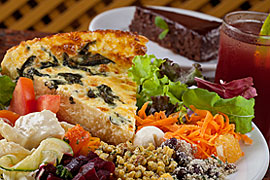 As nossas saladas são escolhidas de acordo com as estações, mas o cardápio do prato do dia muda mensalmente.